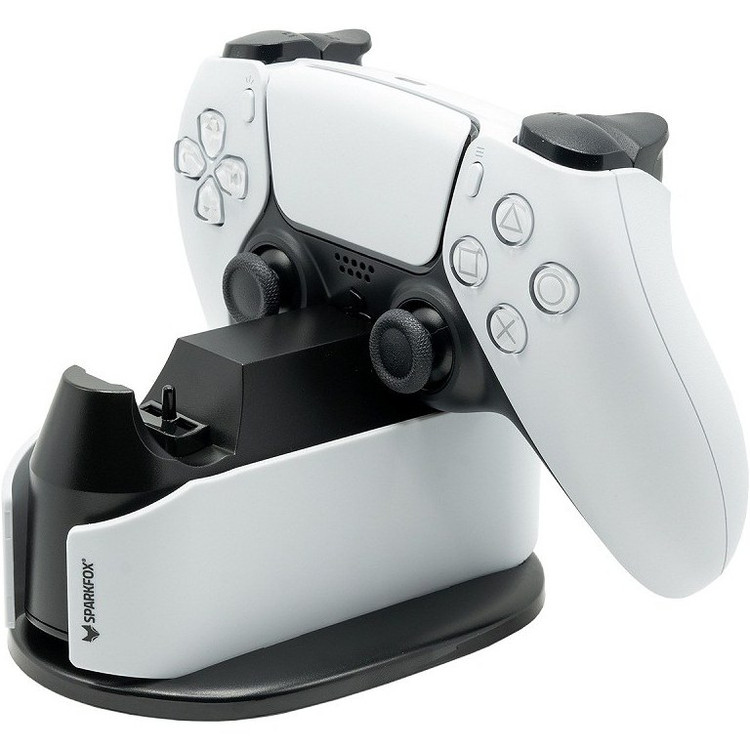 پایه شارژ شرکت Sparkfox به همراه آداپتور شارژر با قابلیت فست شارژ انتخابی بسیار با کیفیت و اقتصادی است که به کمک آن می توانید دو دسته کنسول پی اس فایو را همزمان شارژ کنید.